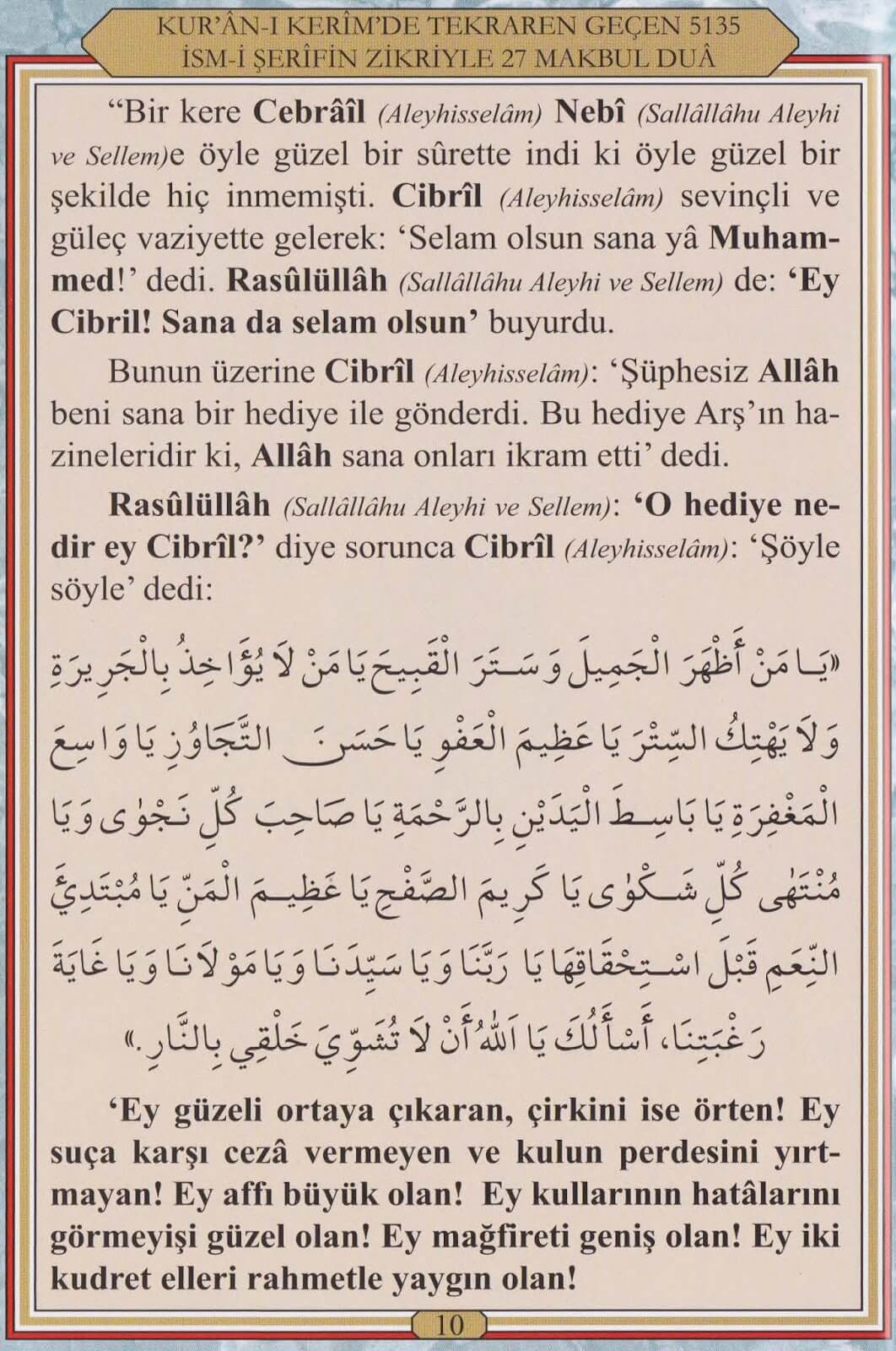 Yâ men azheral cemîle ve seteral qabîha yâ men lâ yuâhizü bil cerîrati ve lâ yehtiküssitra yâ azîmel afvi yâ hasenettecâvüzi yâ vâsial mağfirati yâ bâsital yedeyni birrahmeti yâ sâhibe külli necvâ ve yâ müntehâ külli şekvâ yâ kerîmessafhi yâ azîmel menni yâ mübtedienniami qablestihqâqihâ yâ rabbenâ ve yâ seyyidenâ ve yâ mevlânâ ve yâ ğâyete rağbetinâ. Es-elüke yâ Allâh. En lâ tüşevviye halqî binnâr.