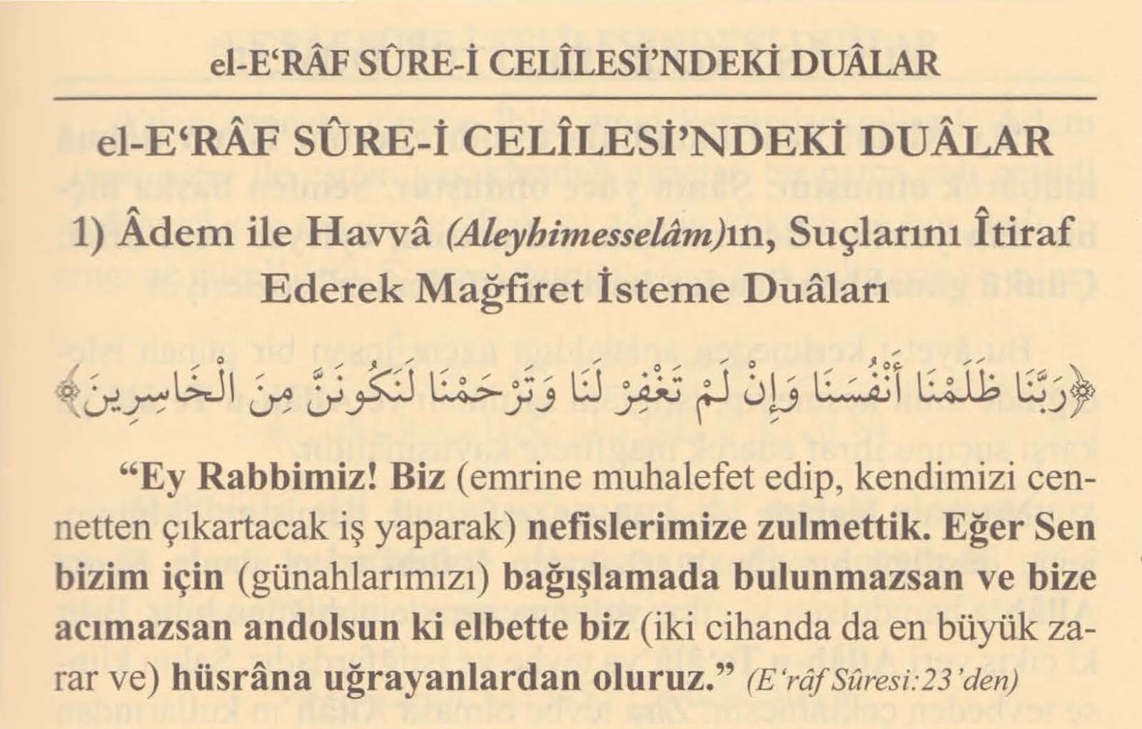 Rabbenâ zalemnâ enfüsenâ ve in lem tağfir lenâ ve terhamnâ lenekûnenne minel hâsirîn.