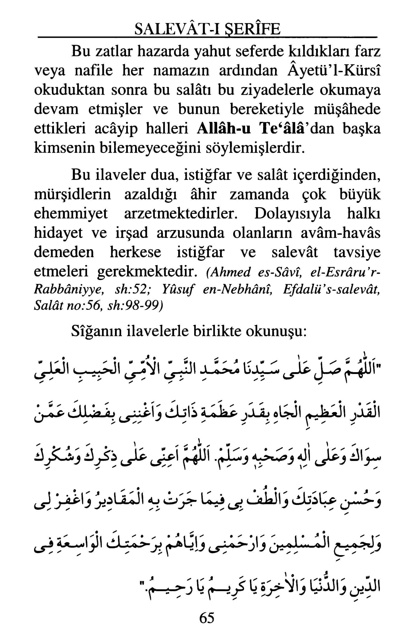 Salevât-ı Şerîfe, Sayfa 65