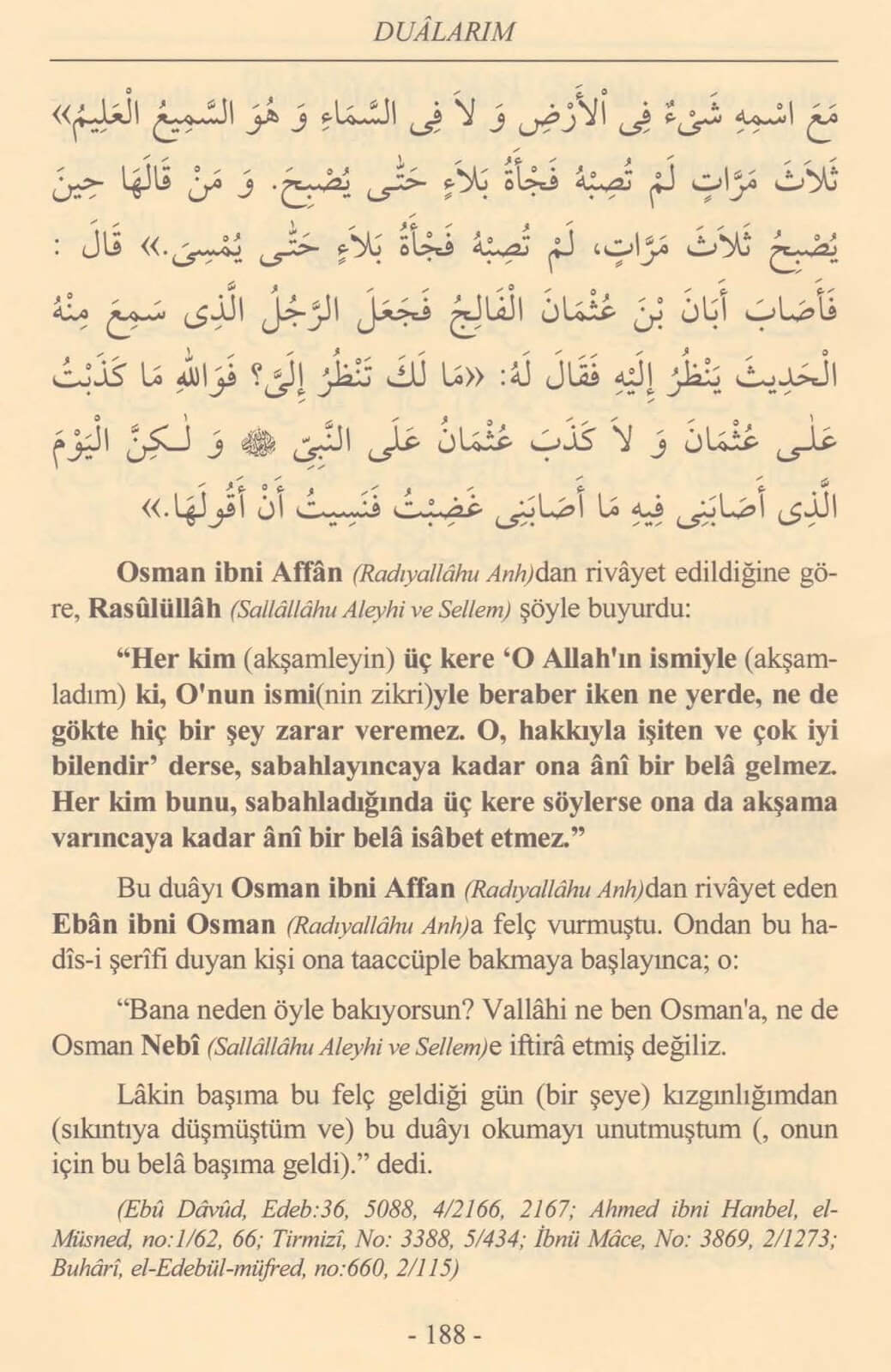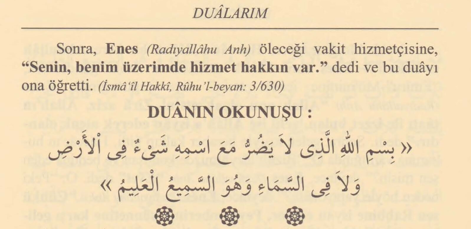 Ani Bir Bela ile Karşılaşmamak İçin Okunacak Dua16 Temmuz 2023Korunma DualarıSabah - Akşam Okunacaklar+1PaylaşPlayDualarımUykudan Uyanıştan İtibaren Yatıncaya Kadar Rasûlüllâh (Sallallâhu Aleyhi Ve Sellem)in Bir Gün Içinde Okuduğu Rivâyet Olunan, Dolayısıyla O'nun Ümmetinin Her Ferdinin Dualarım Diye Sahip Çıkarak Amel Etmesi Sünnet Olan Dua ve ZikirlerKitabı Satın AlDualarım, Sayfa 188 Dualarım, Sayfa 189 Dualarım, Sayfa 190 Okunuşu Bismillâhillezî lâ yedurru measmihî şey-un fil ardı ve lâ fissemâi ve hüvessemîul alîm.