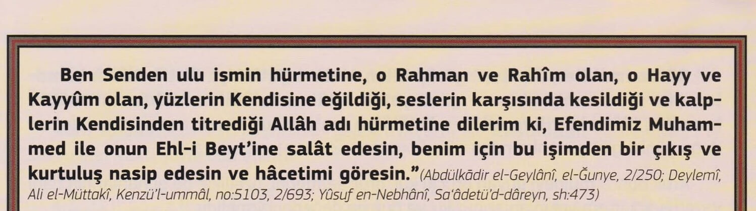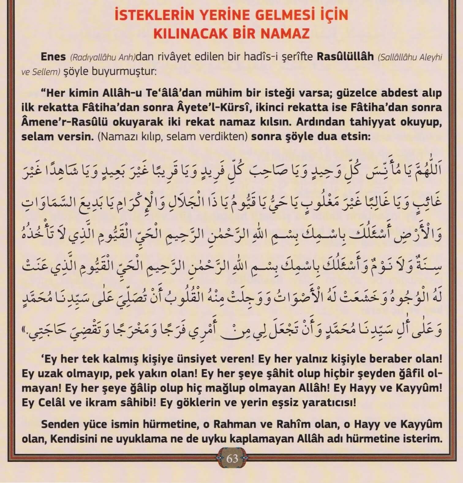 Âyete'l-Kürsî ve Âmenerrasûlü ile Kılınacak 2 Rekat Hacet Namazı14 Ocak 2026Hacet NamazlarıPaylaşOynatArifan Dergisi Ağustos 2011, Sayfa 63 Arifan Dergisi Ağustos 2011, Sayfa 64 NotDua namazdan sonra okunacağı için manası okunabilir.