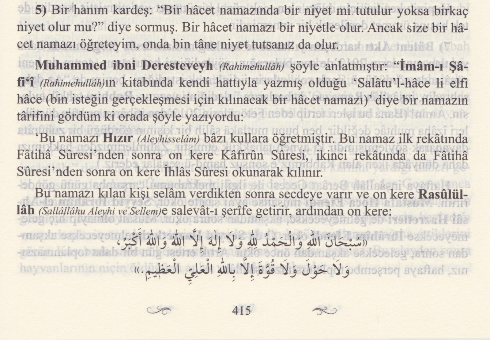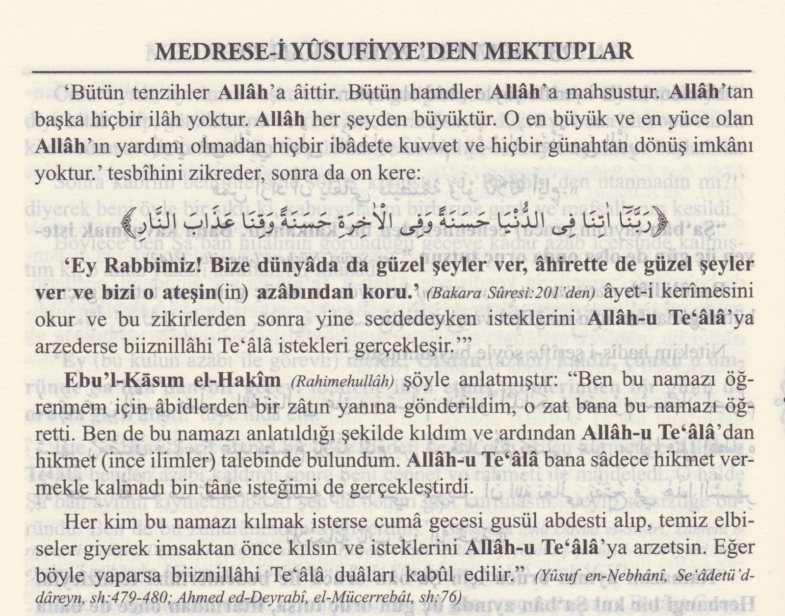 Allâhümme salli alâ seyyidinâ Muhammedin ve alâ âlihî ve sahbihî ve sellim. (Salevât - 10 kere)