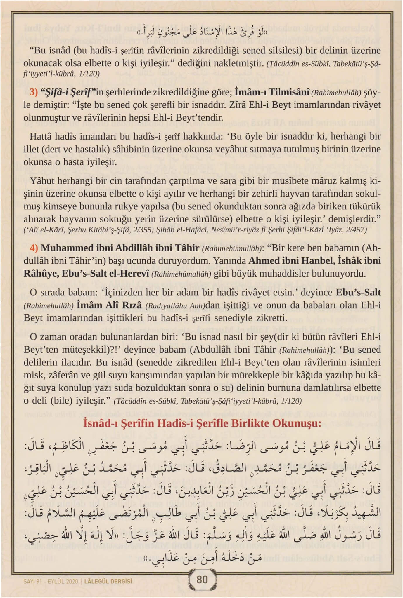 Bu İsnâdı Okuyan veya Dinleyip Âmîn Diyen Hasta veyâ Dertli Varsa Mutlakâ Derdi Zâil Olur