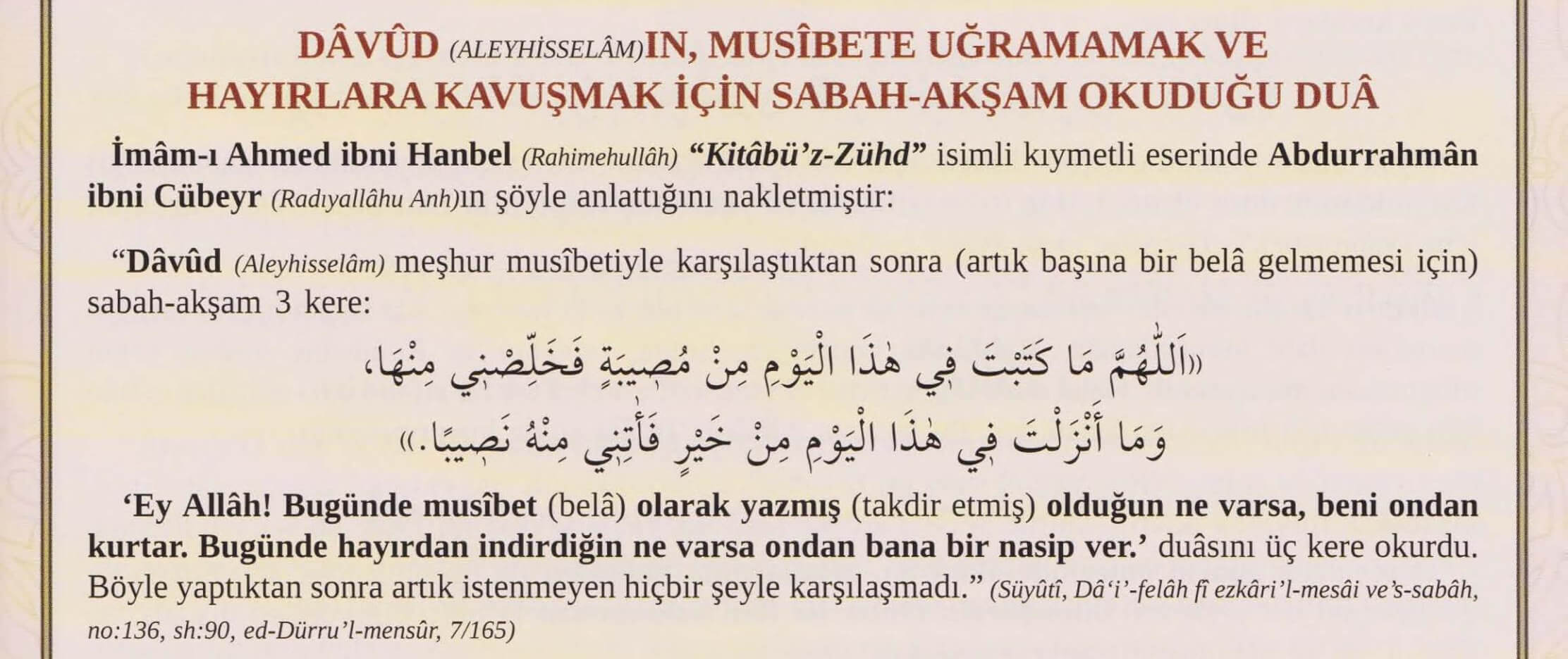 Dâvûd (Aleyhisselam)ın Musibete Uğramamak ve Hayırlara Kavuşmak İçin Sabah Akşam Okuduğu Dua