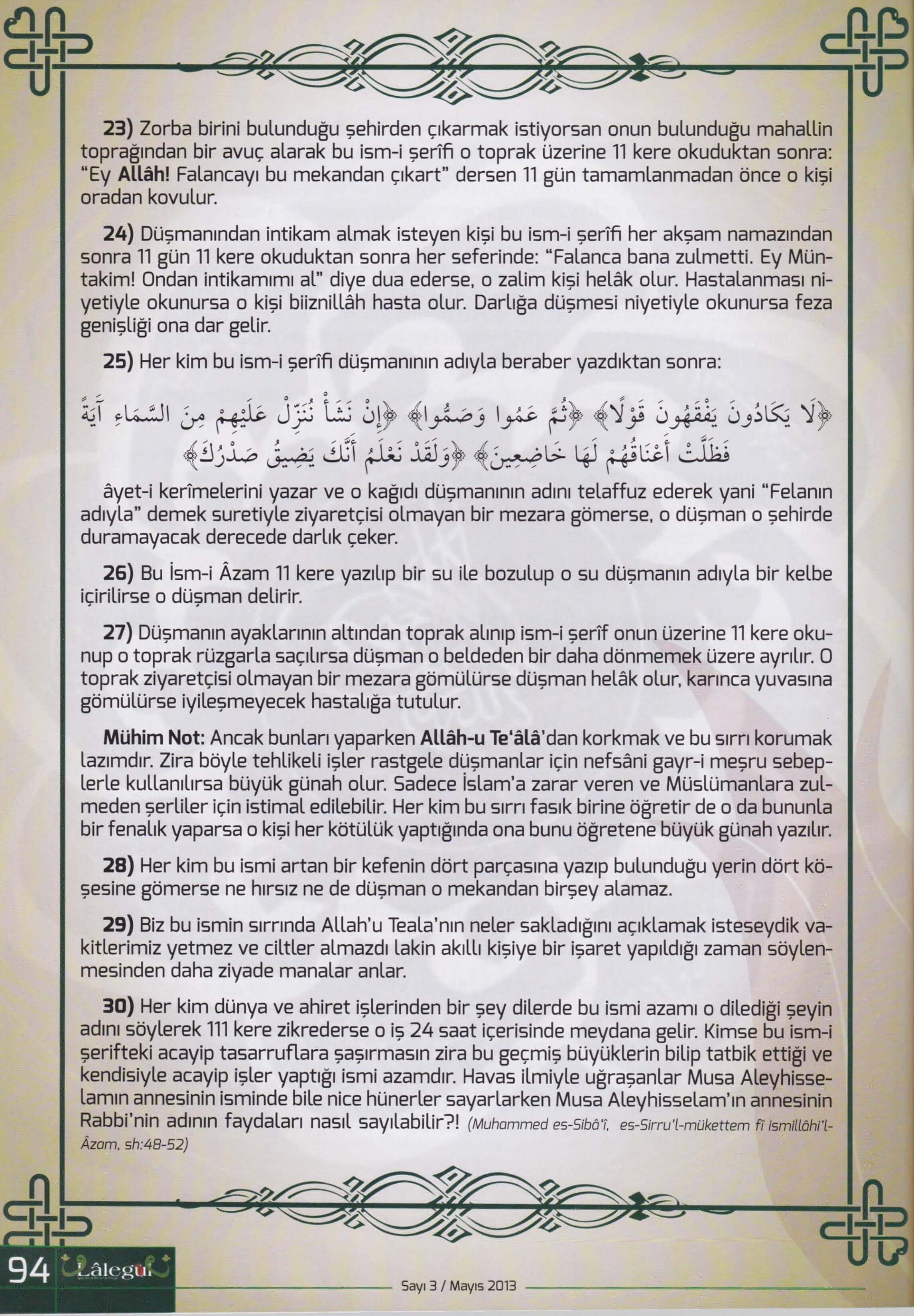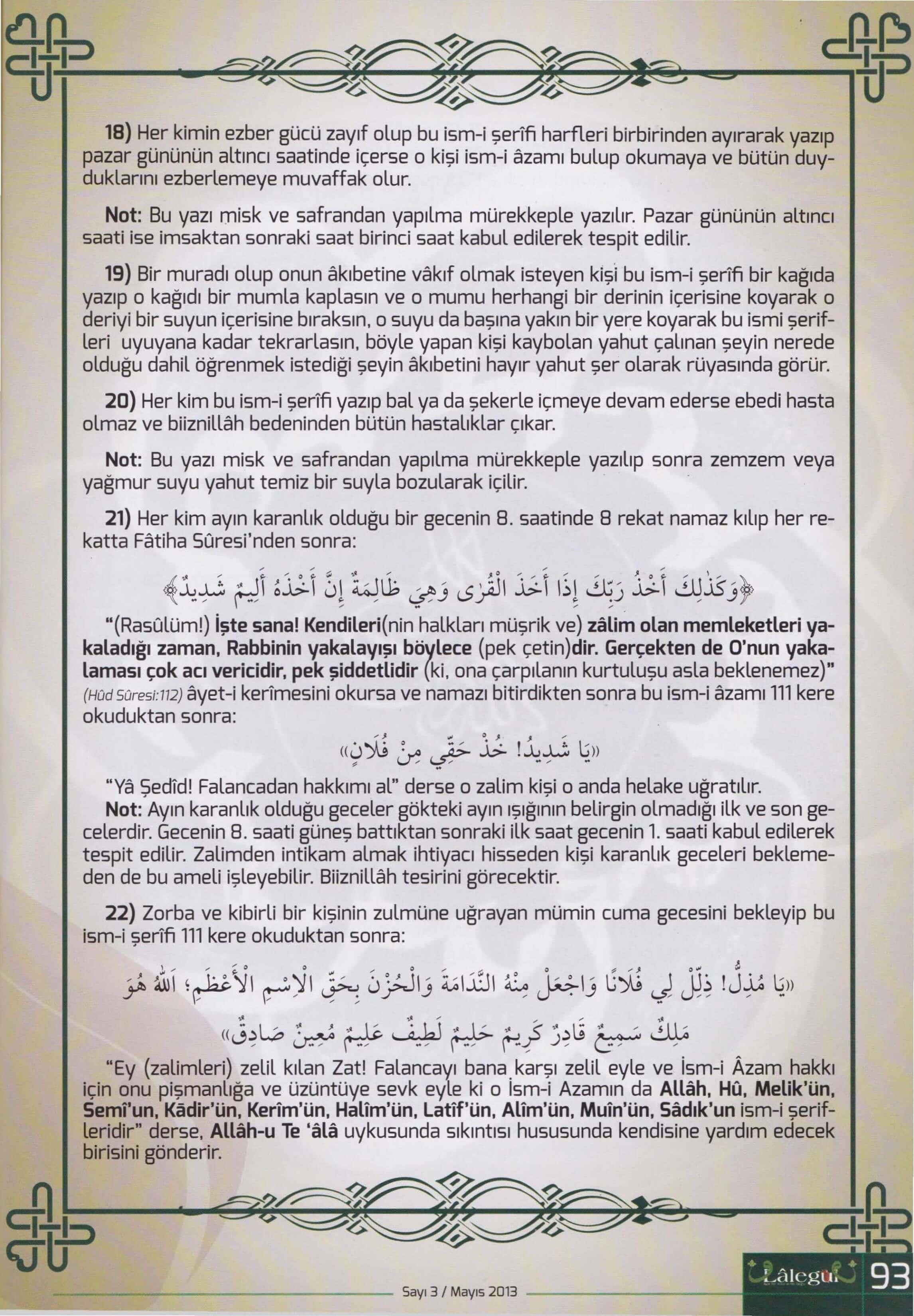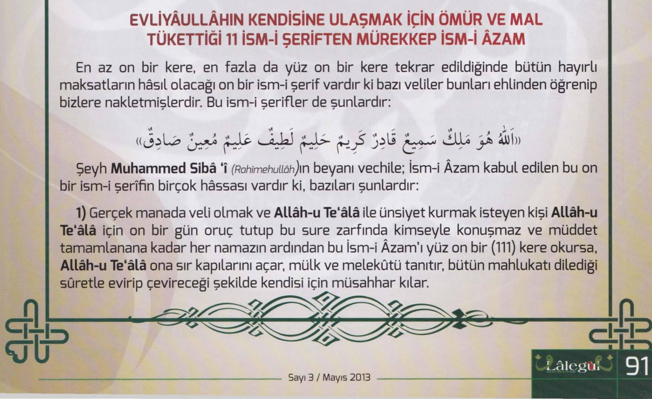 Evliyaullâhın Kendisine Ulaşmak İçin Ömür Ve Mal Tükettigi 11 İsm-i Şeriften Mürekkep İsmi Azam