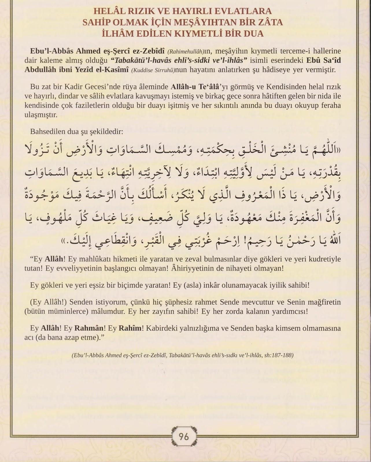 Helal Rızık ve Hayırlı Evlatlara Sahip Olmak İçin Meşayıhtan Bir Zâta İlham Edilen Dua