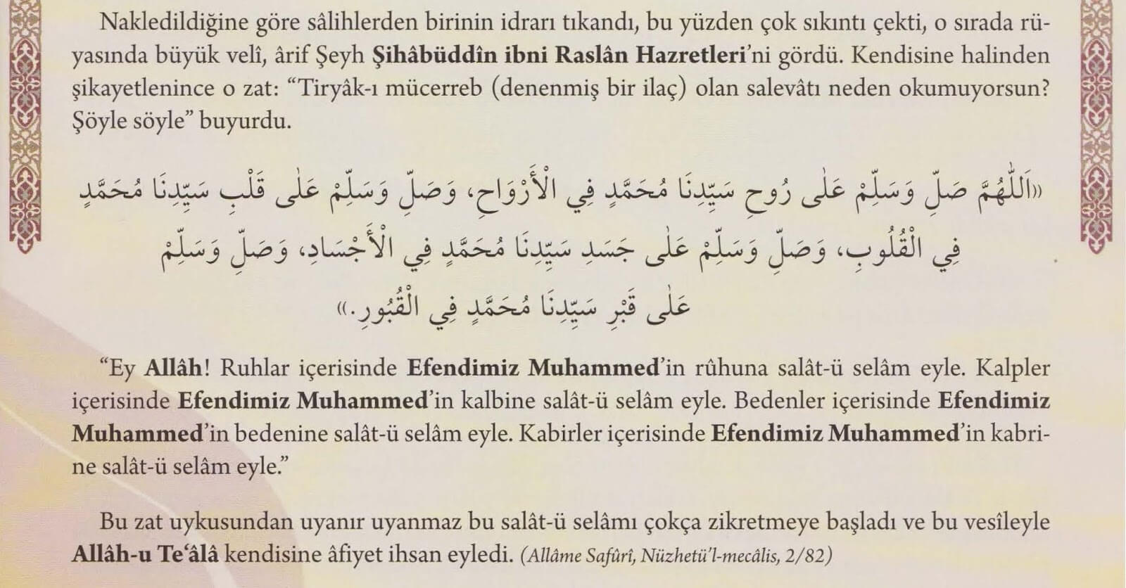 İdrar ve Damar Tıkanıklığı İçin Okunacak Tiryâkı Mücerreb Olan Bir Salevat