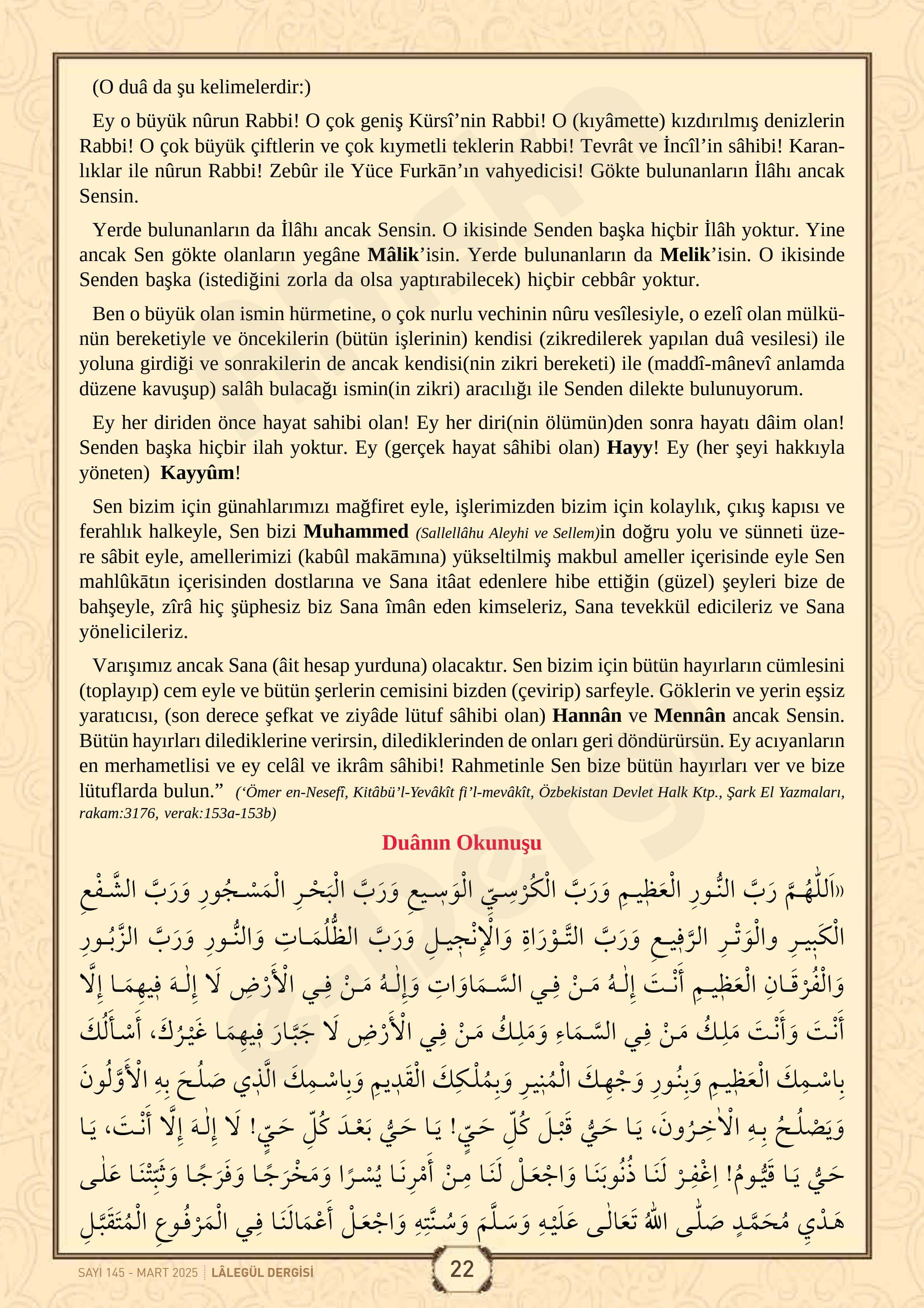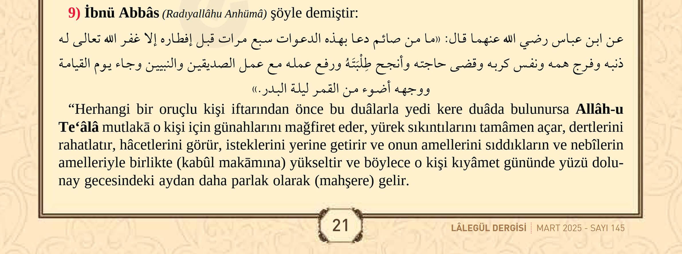 İftardan Önce 7 Kere Okunacak Muhteşem Dua22 Şubat 2026Ramazan-ı ŞerifPaylaşPlayLalegül Dergisi Mart 2025, Sayfa 21 Lalegül Dergisi Mart 2025, Sayfa 22 Lalegül Dergisi Mart 2025, Sayfa 23