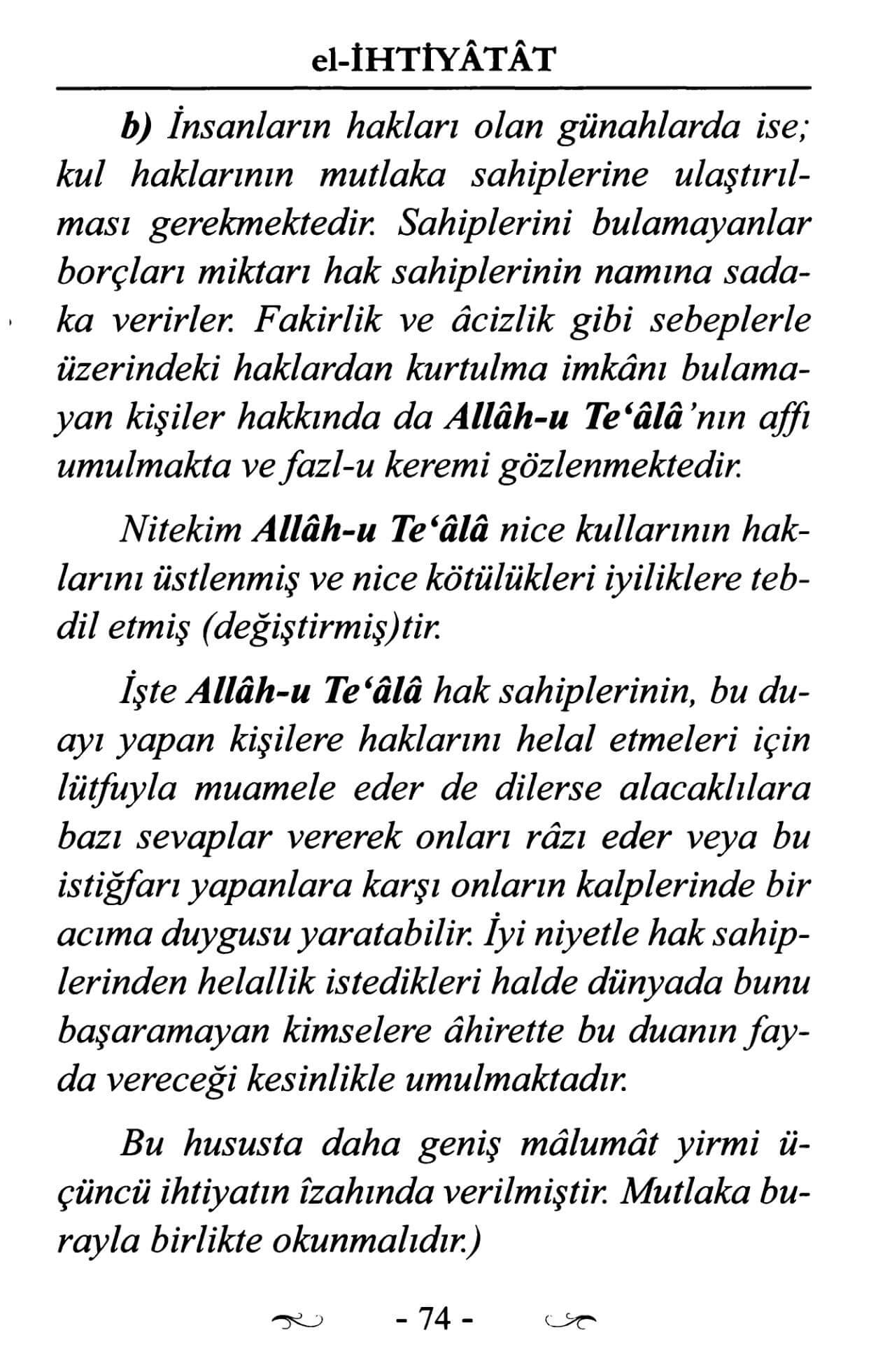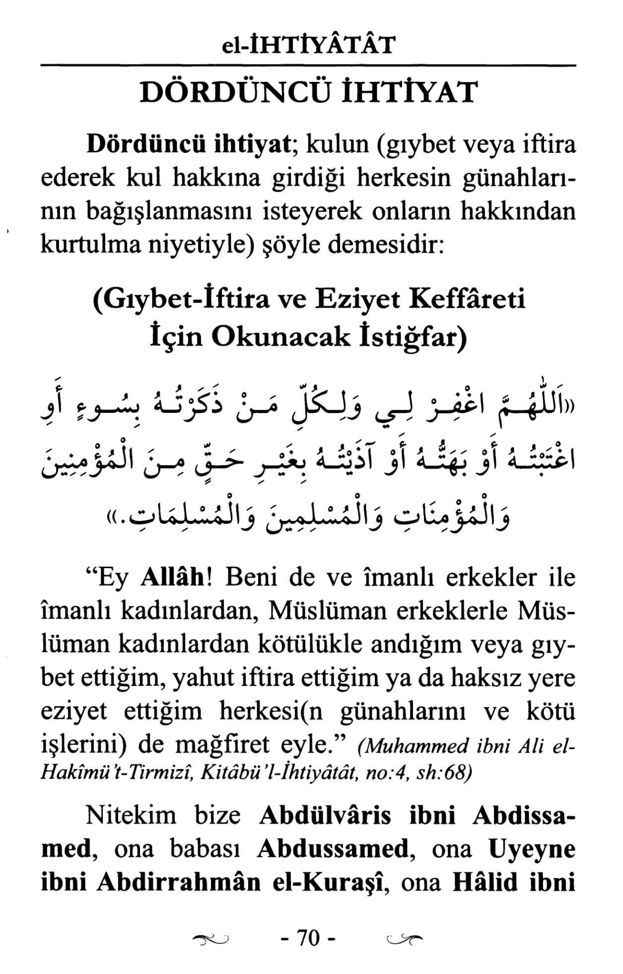 Allâhümmağfirlî ve likülli men zekertühû bisûin eviğtebtühû ev behettühû ev âzeytühû biğayri haqqin minel-mü'minîne vel-mü'minâti vel-müslimîne vel-müslimât.