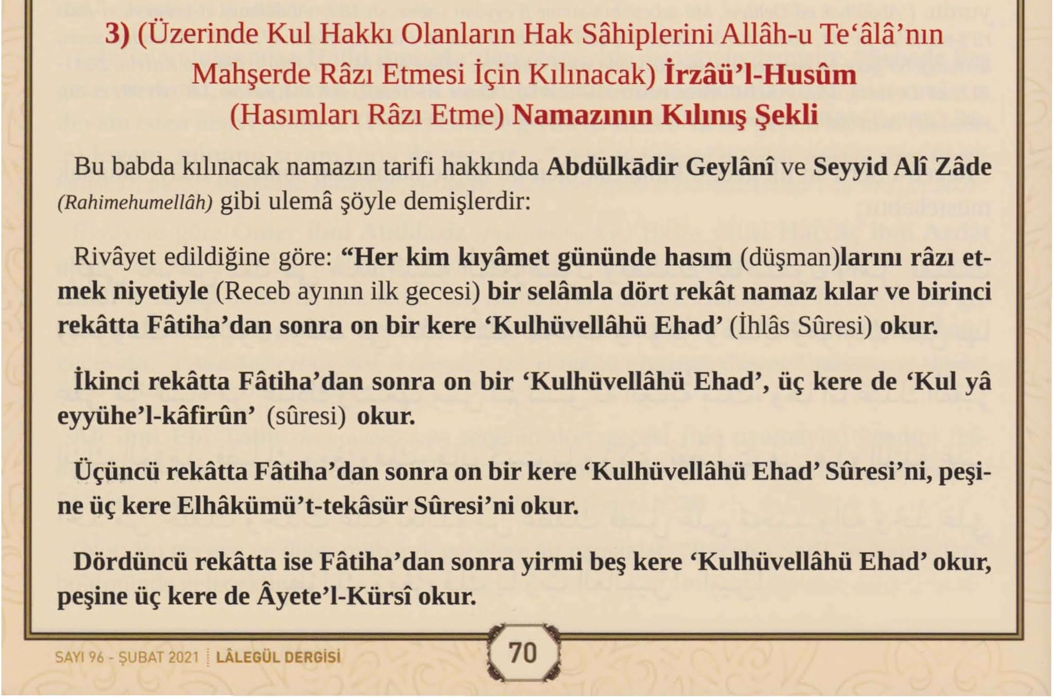 Kul Hakkı Namazı16 Temmuz 2023NamazlarKul Hakkı İçin YapılacaklarReceb-i Şerif+2PaylaşPlayLalegül Dergisi Şubat 2021, Sayfa 70 Lalegül Dergisi Şubat 2021, Sayfa 71