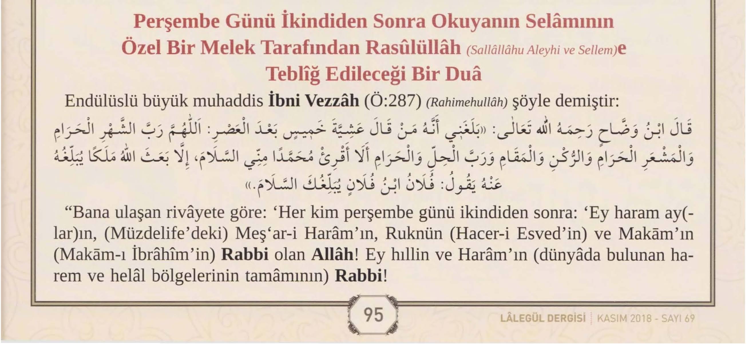 Perşembe İkindiden Sonra Okuyanın Selâmının Özel Bir Melek Tarafından Rasûlüllâh ﷺ’e Ulaştırılacağı Salat