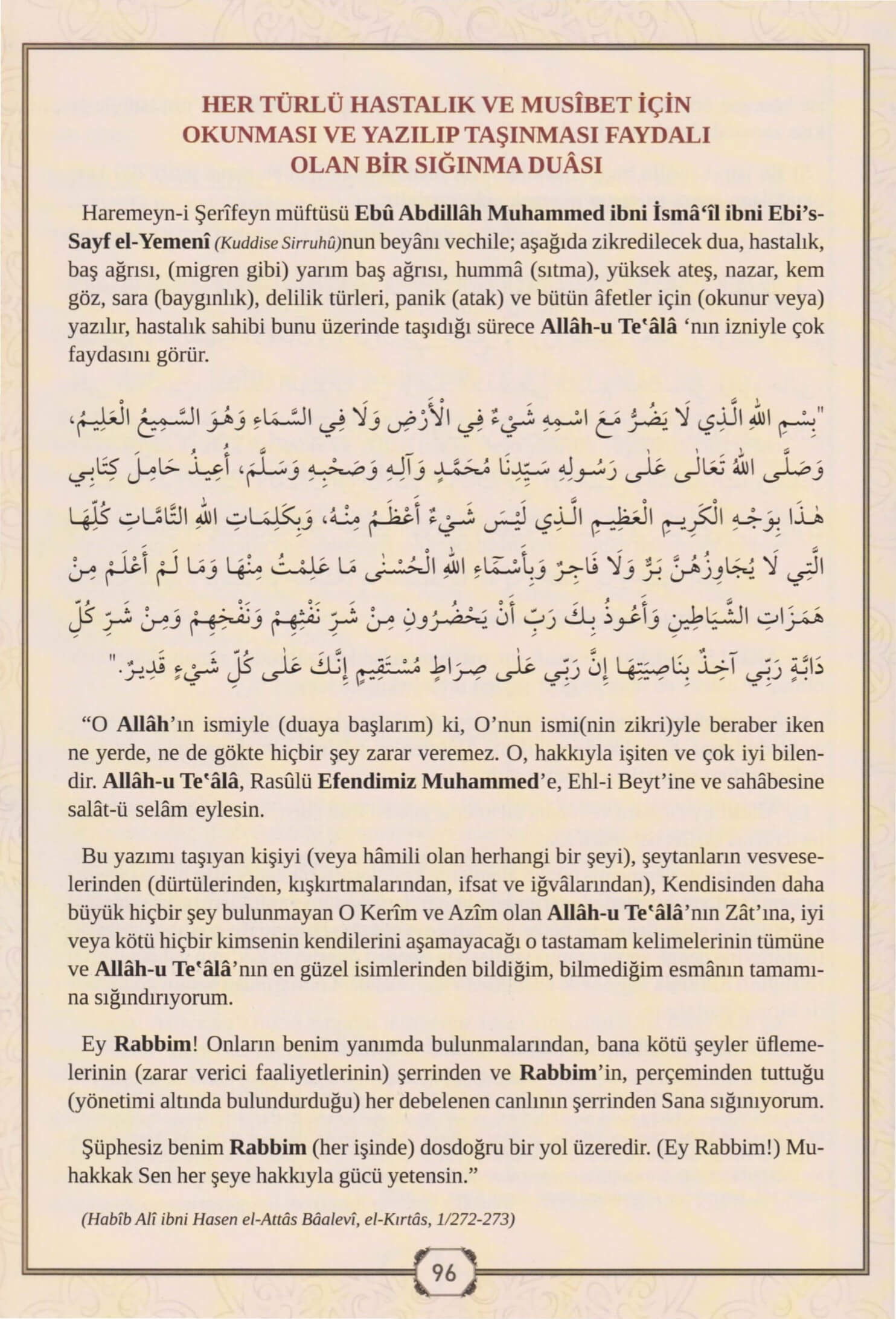 Psikolojik Rahatsızlıklar, Nazar, Baş Ağrısı, Sıtma ve Her Türlü Hastalık İçin Taşınacak Nuska8 Aralık 2023Nuska Yapılıp TaşınacaklarHastalıklar İçin Dualar+1PaylaşPlayLalegül Dergisi Temmuz 2015, Sayfa 96 Lalegül Dergisi Temmuz 2015, Ek