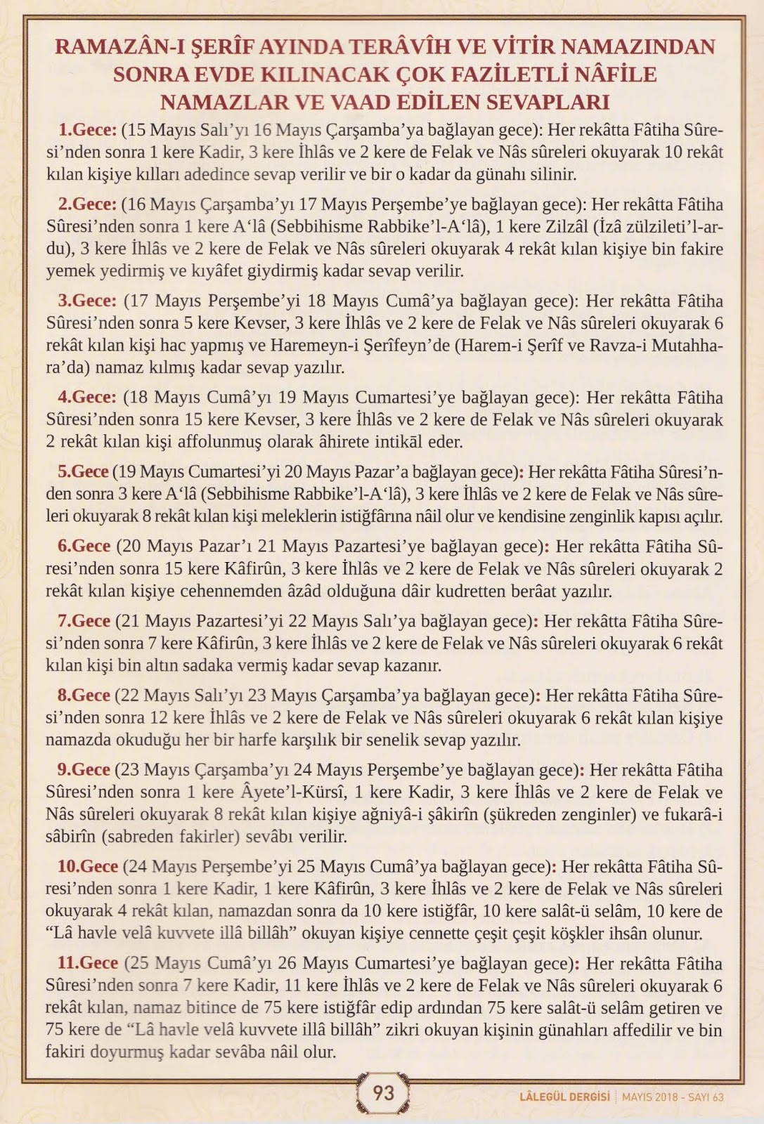 Ramazanda Teravihten Sonra Kılınacak Çok Faziletli Nafile Namazlar23 Şubat 2025Ramazan-ı ŞerifPaylaşPlayLalegül Dergisi Mayıs 2018, Sayfa 93 Lalegül Dergisi Mayıs 2018, Sayfa 94 Lalegül Dergisi Temmuz 2015, Sayfa 85 Lalegül Dergisi Temmuz 2015, Sayfa 86