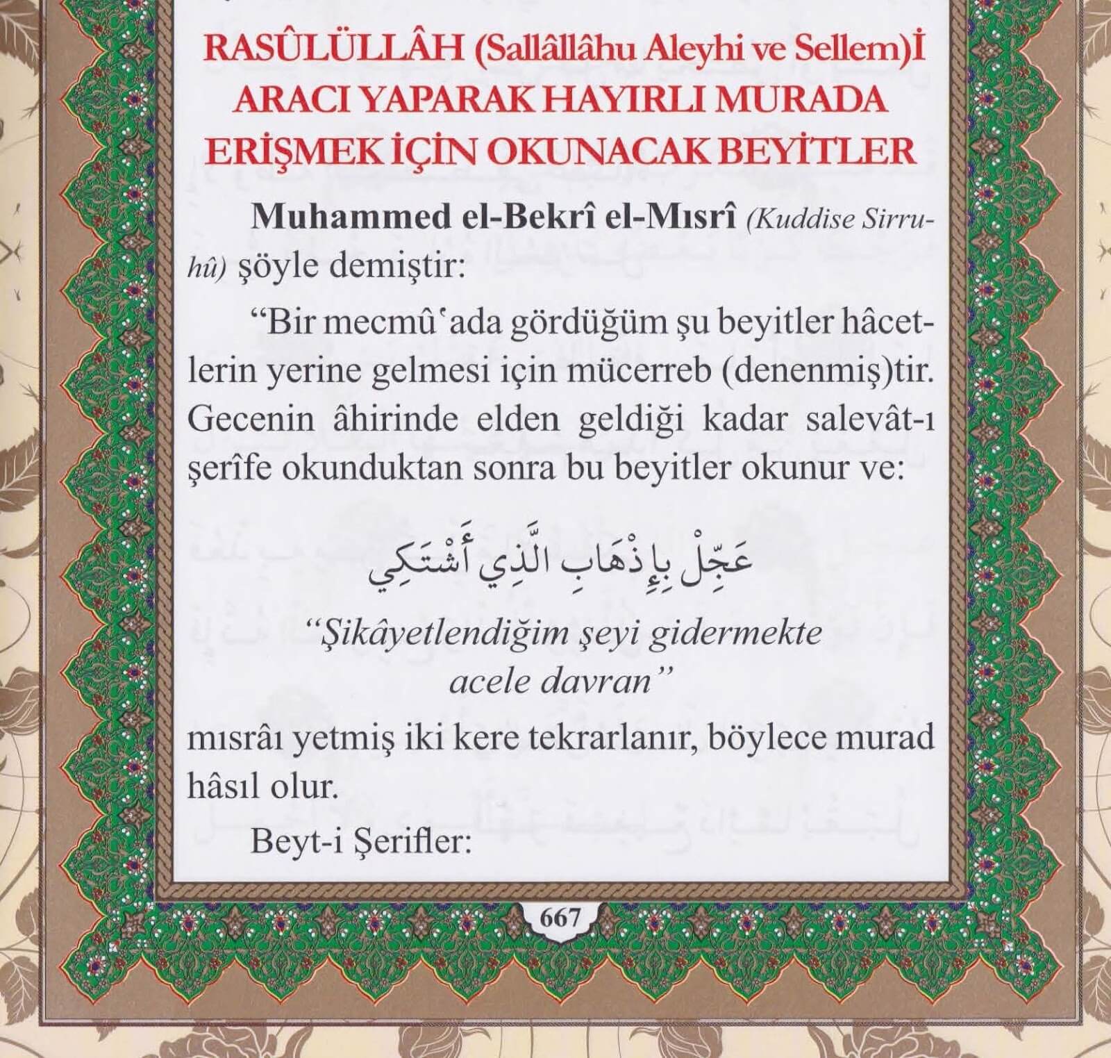 Rasûlüllâh ﷺ'i Aracı Yaparak Hayırlı Murada Erişmek İçin Okunacak Beyitler