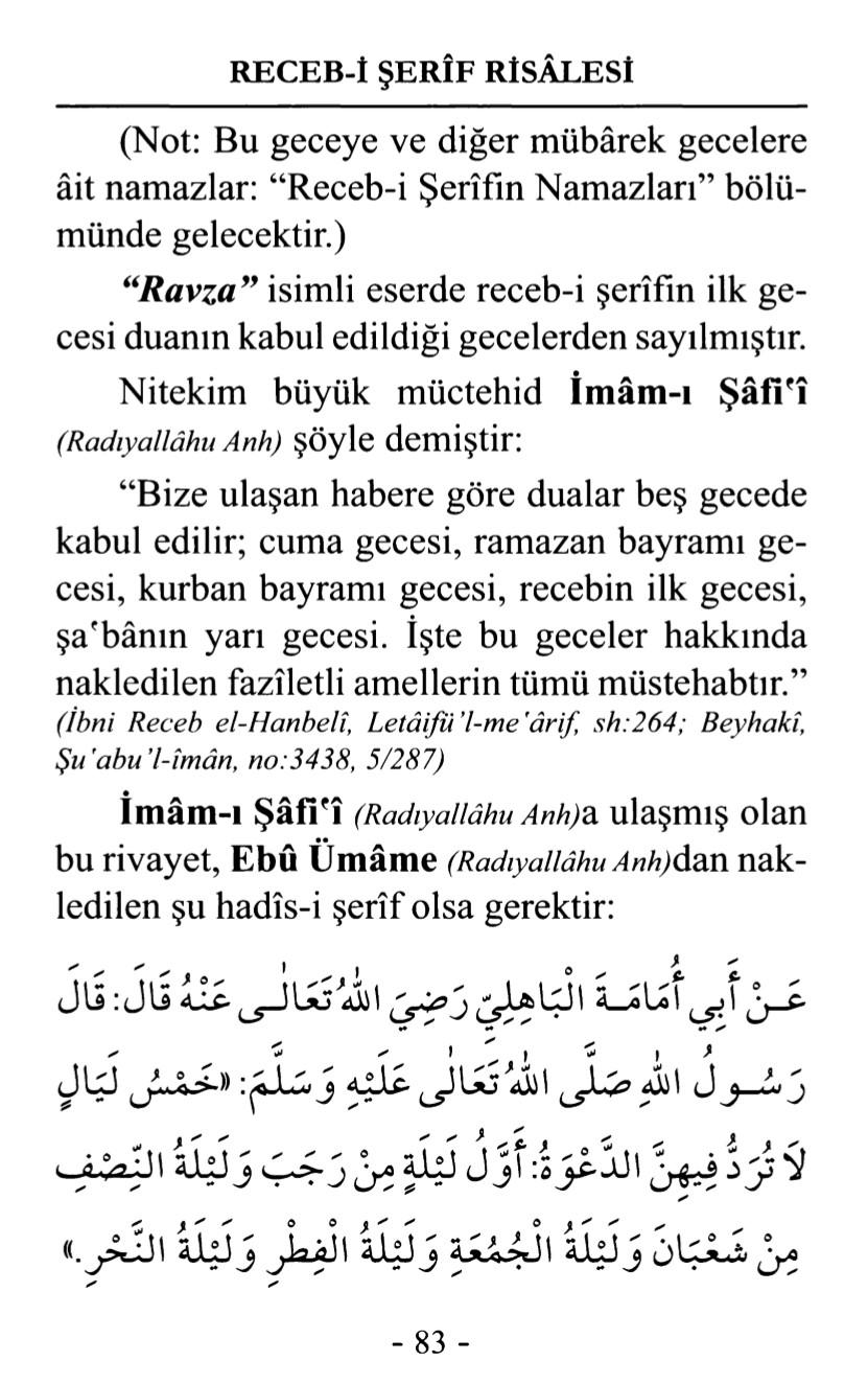 Receb-i Şerif'in İlk Gecesini İhya Etmenin Faziletleri15 Ocak 2023Receb-i ŞerifPaylaşPlayReceb-i Şerîf RisâlesiReceb-i Şerîf'te Yapılacak Fazîletli Zikirler, Duâlar ve Sâlih Ameller RisâlesiKitabı Satın AlReceb-i Şerif Risalesi, Sayfa 75 Receb-i Şerif Risalesi, Sayfa 76 Receb-i Şerif Risalesi, Sayfa 77 Receb-i Şerif Risalesi, Sayfa 78 Receb-i Şerif Risalesi, Sayfa 79 Receb-i Şerif Risalesi, Sayfa 80 Receb-i Şerif Risalesi, Sayfa 81 Receb-i Şerif Risalesi, Sayfa 82 Receb-i Şerif Risalesi, Sayfa 83 Receb-i Şerif Risalesi, Sayfa 84 Receb-i Şerif Risalesi, Sayfa 85 Receb-i Şerif Risalesi, Sayfa 86 Receb-i Şerif Risalesi, Sayfa 87