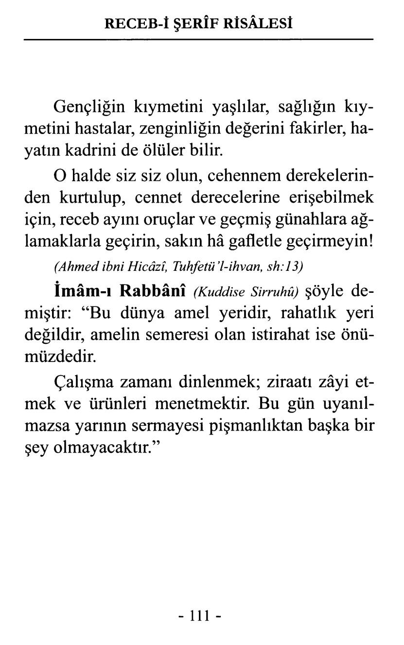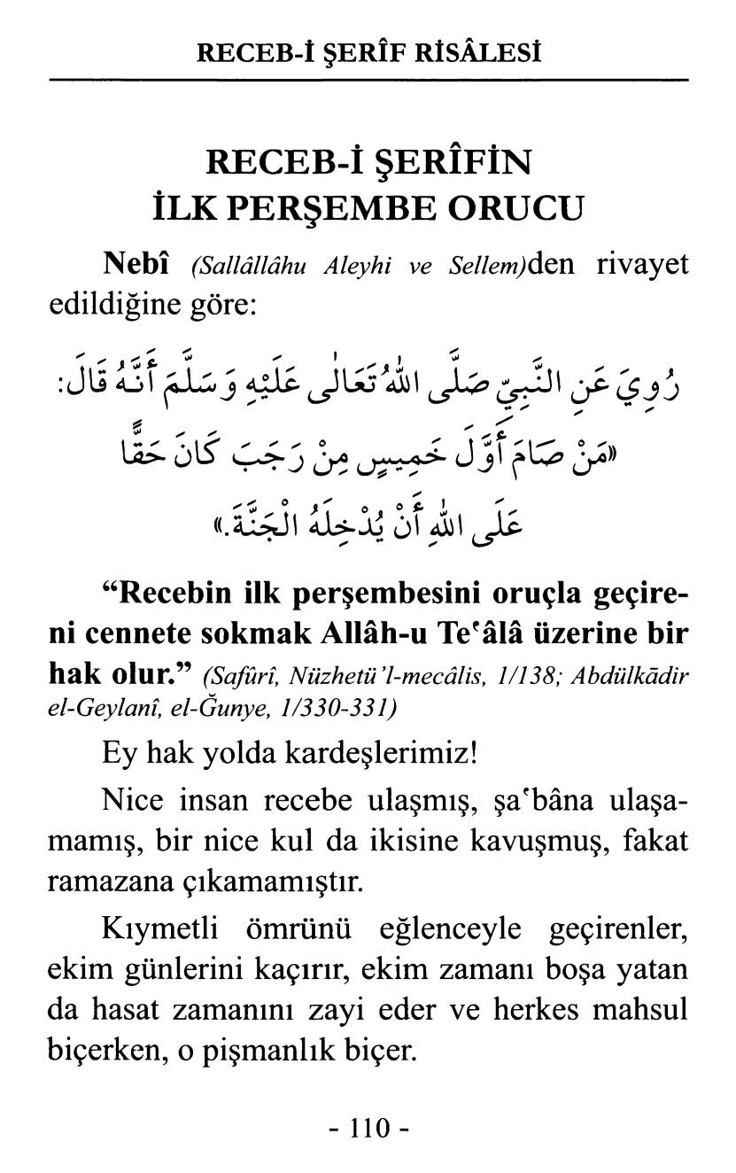 Receb-i Şerif'in İlk Perşembe Orucu15 Ocak 2023Receb-i ŞerifPaylaşPlayReceb-i Şerîf RisâlesiReceb-i Şerîf'te Yapılacak Fazîletli Zikirler, Duâlar ve Sâlih Ameller RisâlesiKitabı Satın AlReceb-i Şerif Risalesi, Sayfa 110 Receb-i Şerif Risalesi, Sayfa 111