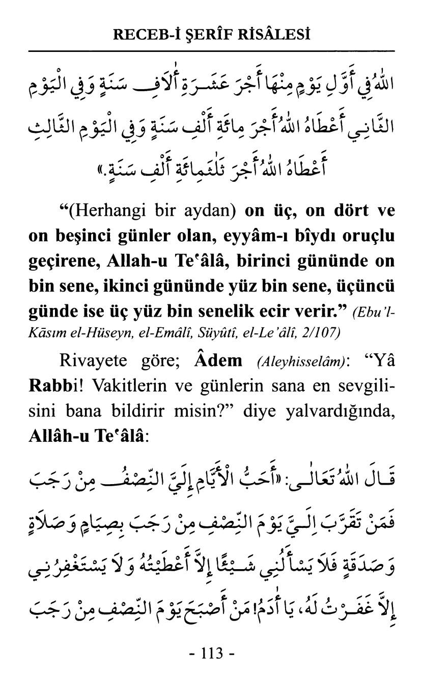 Receb-i Şerif'te 13, 14, 15. Günler Orucu (Eyyamı Biyz)16 Ocak 2023Receb-i ŞerifPaylaşPlayReceb-i Şerîf RisâlesiReceb-i Şerîf'te Yapılacak Fazîletli Zikirler, Duâlar ve Sâlih Ameller RisâlesiKitabı Satın AlReceb-i Şerif Risalesi, Sayfa 112 Receb-i Şerif Risalesi, Sayfa 113 Receb-i Şerif Risalesi, Sayfa 114 Receb-i Şerif Risalesi, Sayfa 115