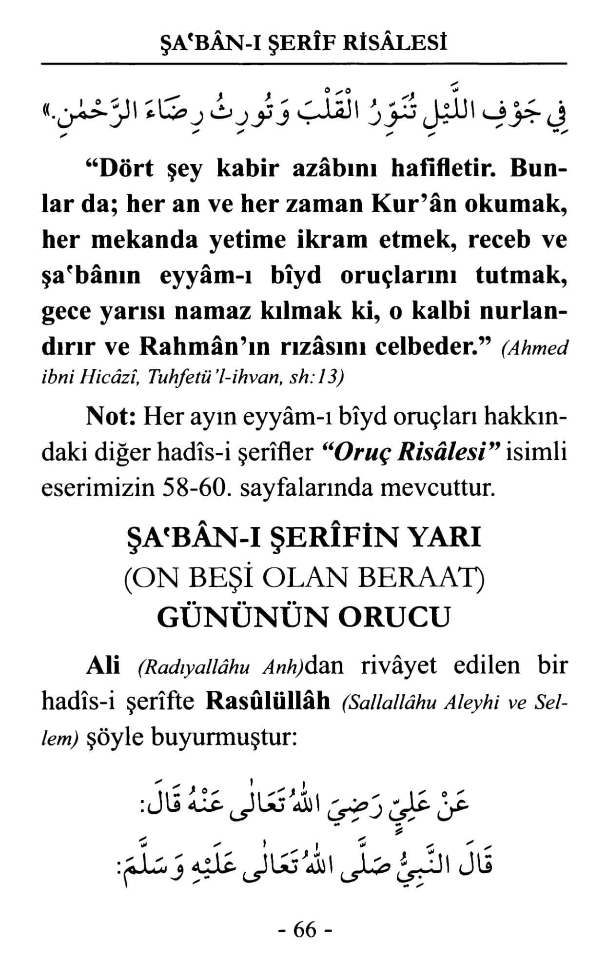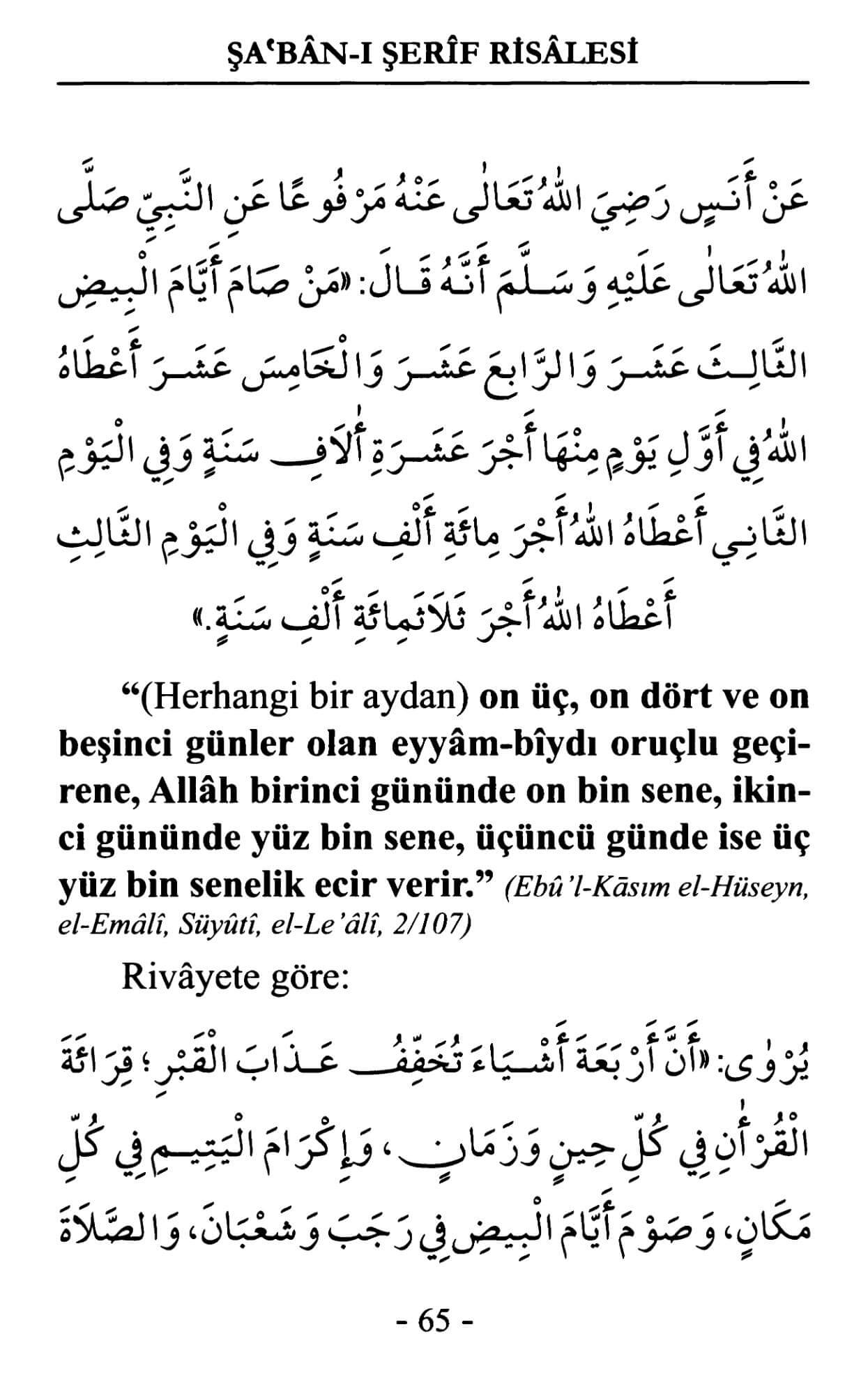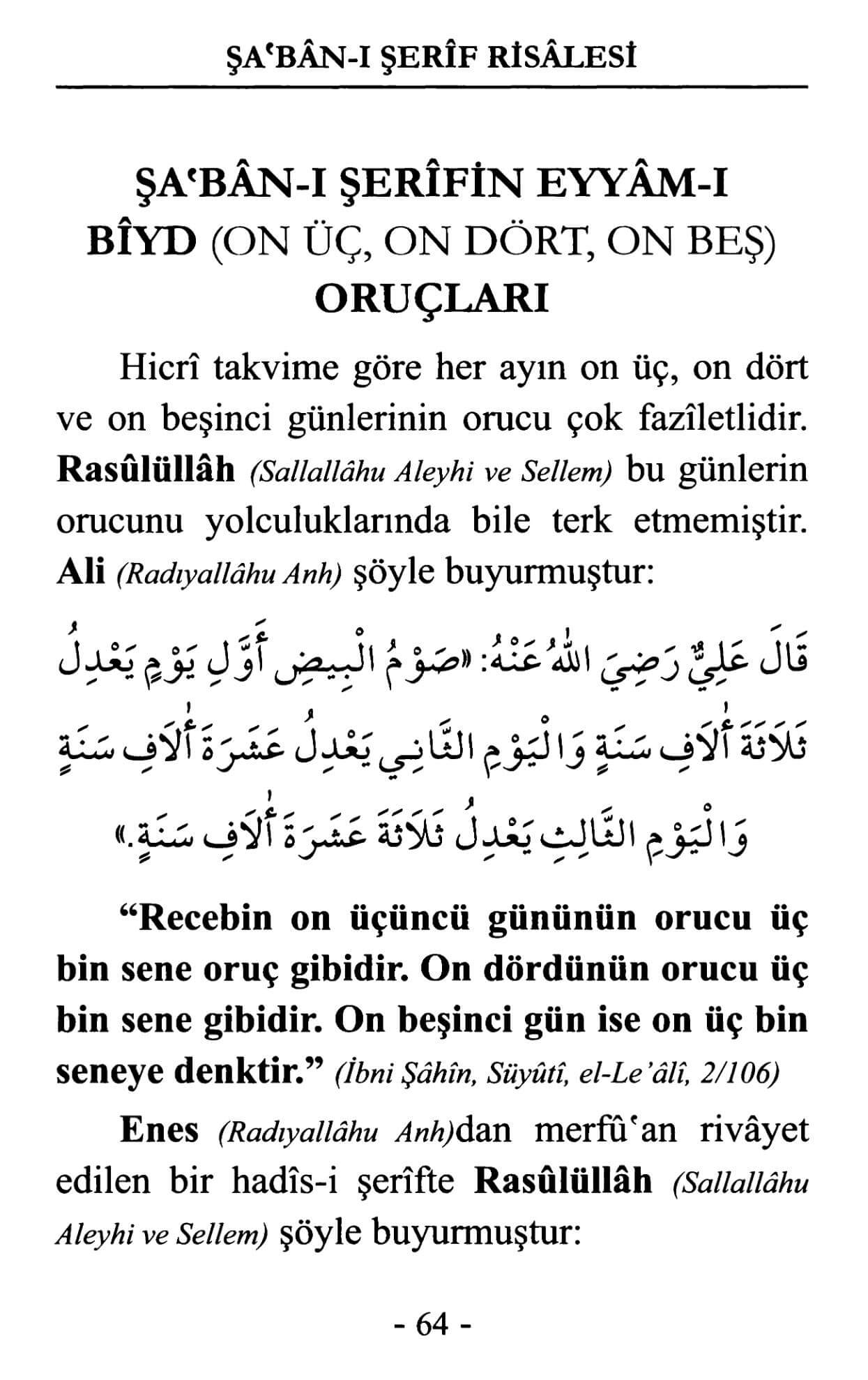 Şaban-ı Şerif'te 13, 14, 15. Günler Orucu (Eyyamı Biyz)18 Ocak 2024Şa'bân-ı ŞerifPaylaşPlayŞa'bân-ı Şerîf RisâlesiŞa'bân-ı Şerîf'te ve Berâet Gecesi'nde Yapılacak Fazîletli Zikirler, Duâlar ve Sâlih Ameller RisâlesiKitabı Satın AlŞa'bân-ı Şerif Risalesi, Sayfa 64 Şa'bân-ı Şerif Risalesi, Sayfa 65 Şa'bân-ı Şerif Risalesi, Sayfa 66 Şa'bân-ı Şerif Risalesi, Sayfa 67 Şa'bân-ı Şerif Risalesi, Sayfa 68İlgili GönderilerŞaban Ayının Başından, Ortasından ve Sonundan 3 Gün Oruç TutmakŞaban Ayının Son Pazartesi Orucu