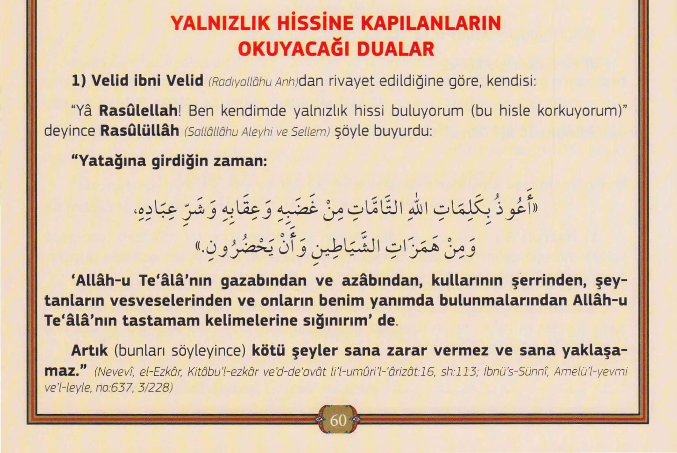 Eûzü bikelimâtillâhittâmmâti min ğadabihî ve iqâbihî ve şerri ibâdih. Ve min hemezâtişşeyâtîni ve en yahdurûn.